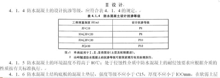防水混凝土设计抗渗等级 |