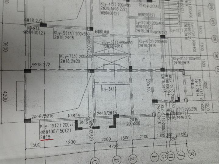 大众援助看一下有红笔标出的那根框架梁(KLy-19(2)配筋有什么问题吗?为什么只用了两根18的钢筋?