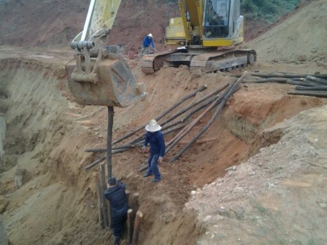 以为做个松木桩边坡加固方案就能扛住土层侧压力,麻痹没人报告我这下面地下水含量这么大哇
