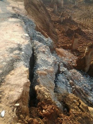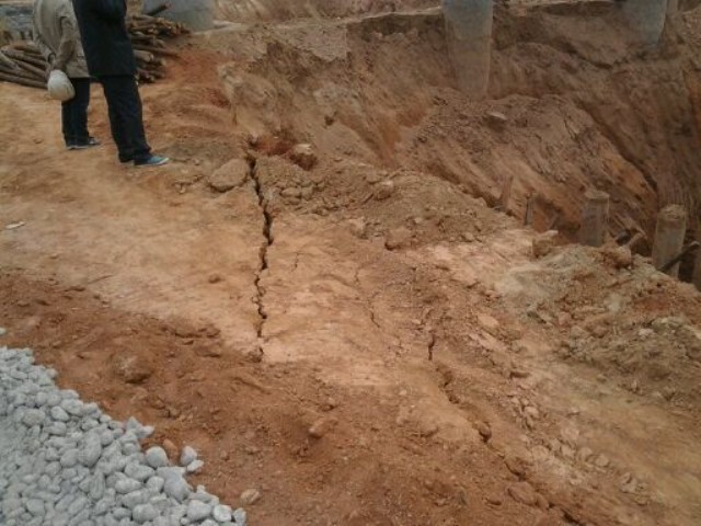 地面有明显的裂缝,需要加强基坑周边观测。必须时采取反压