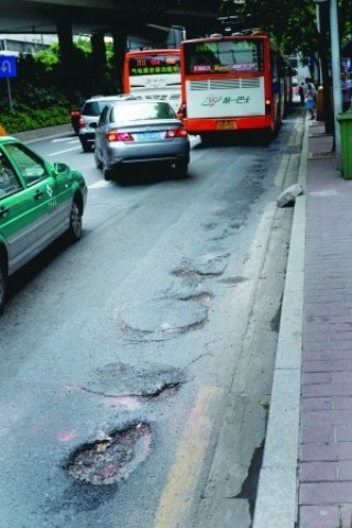 广州市交委体现,出现这种情况主要是由于近期雨水较多,车流量较大,且受到公车启、停作用,容易造成沥青路面的拥堆、烂氹等沥青路面病害现象的孕育产生。由于沥青路面怕水,如遇沥青路面的横坡较小,流水速度慢,孕育产生积水,又常有重型汽车碾压或车流量大就容易孕育产生坑氹。