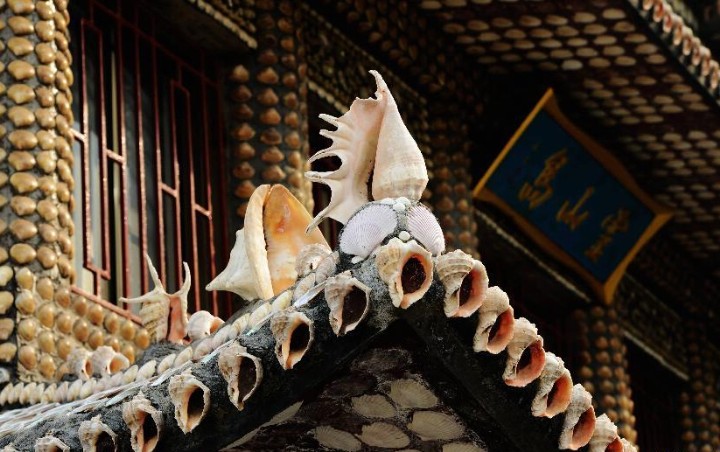 贝壳楼外墙贝壳装饰共计1500余平方米,北半部为中国古代建筑品格,以海螺壳为瓦片,以鲍鱼壳为瓦当,宽裕渔家风尚的雕梁画栋,镶满了种种彩贝和彩石。