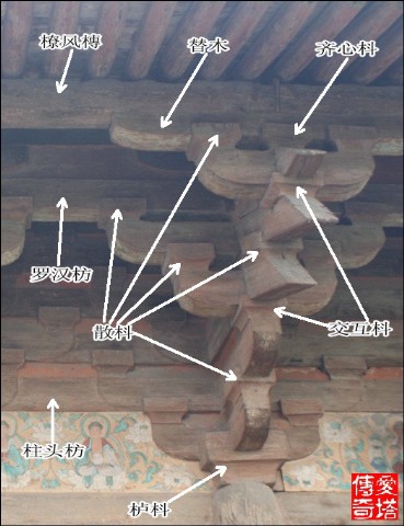 罗汉方是位于铺作出跳之上的长方,外转位于柱头方和橑风槫之间,里转位于柱头方和筭桯方之间