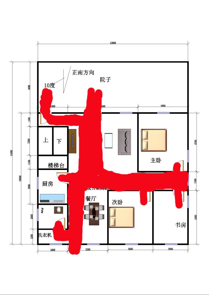 自建房的平面设计图,地块面积12米*14.6米,有什么一致理的地方请大众指出,多谢列位