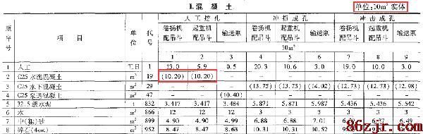 可以从相应定额里面看得到,一般在定额里面混凝土的消耗用()体现出来的,定额单位通常是10m3,定额消耗是计取了场内操纵损耗的。
