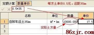示例:运土方10000m3,运距为35km,每土方运的单价为0.5元/m3。