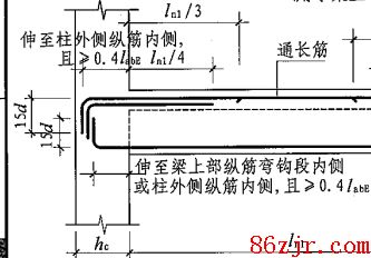 你好:由于图中给出的抗扭纵筋在集中标注里标注的,属于通长安排的,所以计算时按两跨的净长+两个直锚长度(如果直锚长度超出了柱子宽时,按伸至柱子的主筋内侧+15D的弯折。