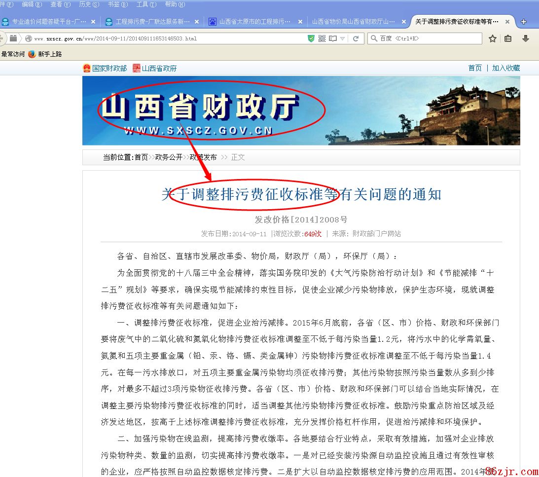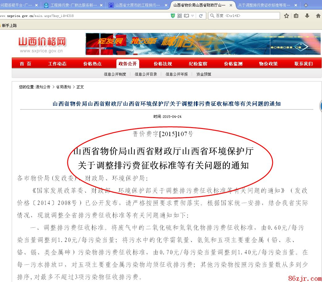 2.再看一看山西省物价局山西省财务厅山西省环境守卫厅《关于调解排污费征收准则等有关问题的通知》 http://www.sxprice.gov.cn/main.aspx?key_id=4318 中国最佳造价交流网站,致力于建设专为造价同行服务的自由交流家园