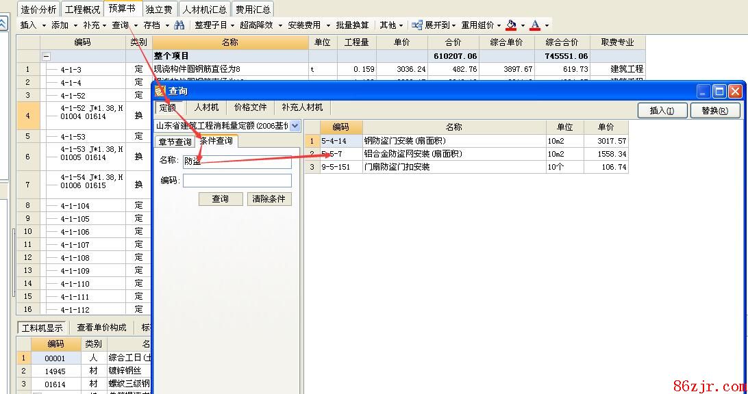 --:定额中没有钢筋防盗网。建议你补充一个子目,然后按平米计入主材价格。