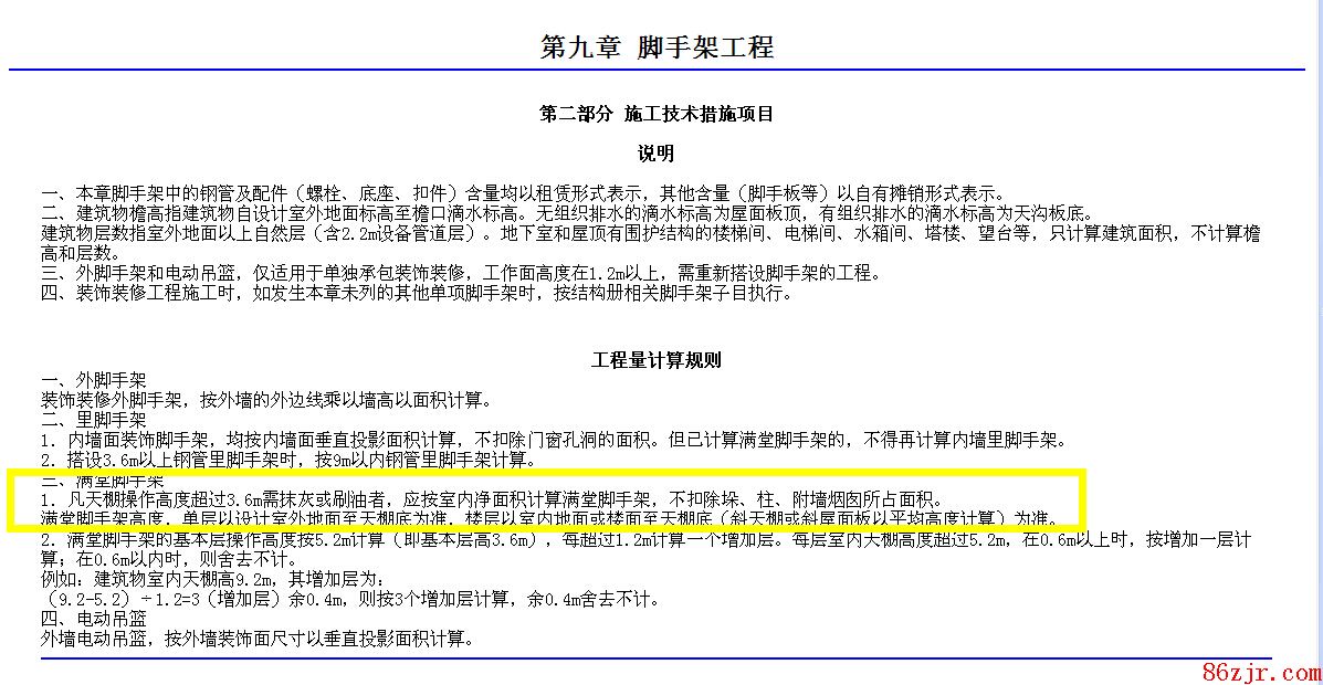 已经综合考虑了高度3.6m以内脚手架费用】,高度>3.6m以上时需要单独计算脚手架。