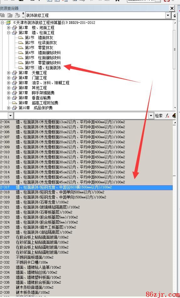 天津定额套墙柱面装饰,轻钢龙骨子目,然后自己修改消耗量的价格