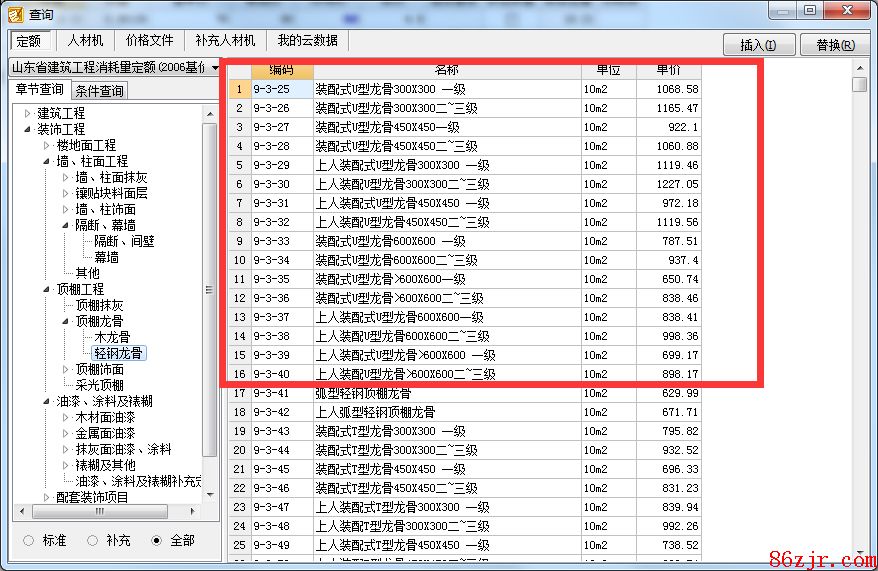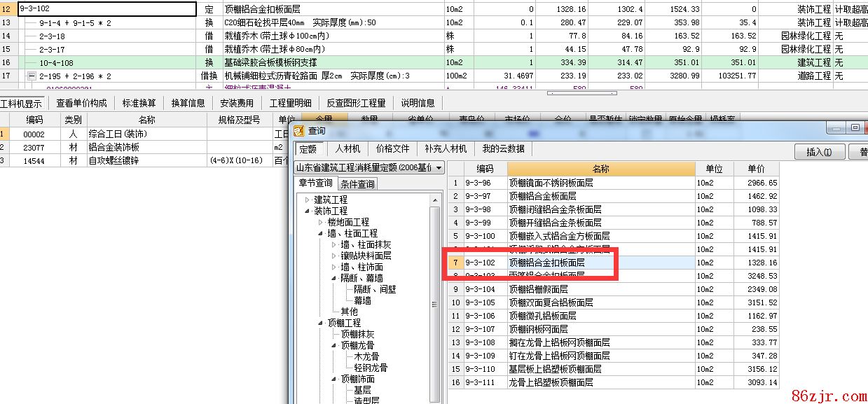 再加上铝扣板的定额子目9-3-102