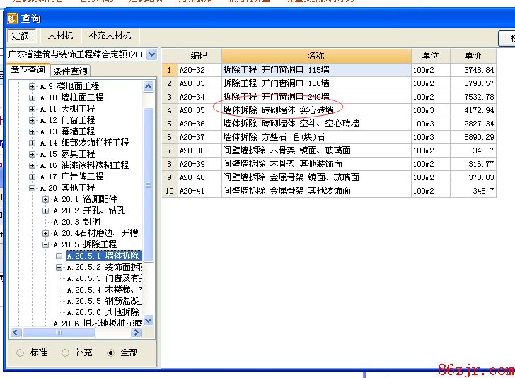 套当地修缮定额的砖墙拆除子目