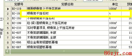 如果是石材的钢骨架,是有专用的干挂石材钢骨架的定额子目的,是按重量计算的,把骨架的重量计算出来就行了,下图是河北装饰定额里的,你在你们地区的装饰定额里,在计价软件的条件盘问里搜一下应该可以找到的。