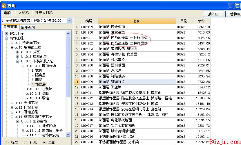 答;建议先安装广东省的仿古专业清单和定额。然后逐一对应查找。例如下图的方法。(左侧是清单,右侧是定额)