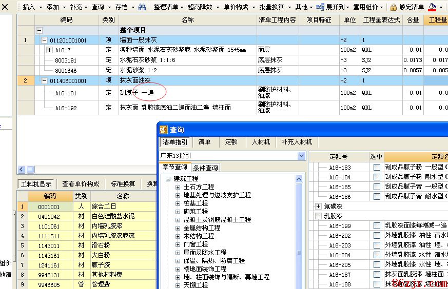 墙面批荡,刷304(防霉),如何组价?