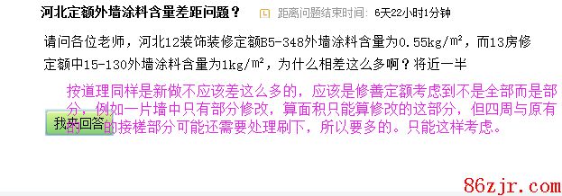 B5-348外墙涂料含量为0.55kg/㎡,而13房修定额中15-130外墙涂料含量为1kg/㎡,为什么相差这么多啊?将近一半