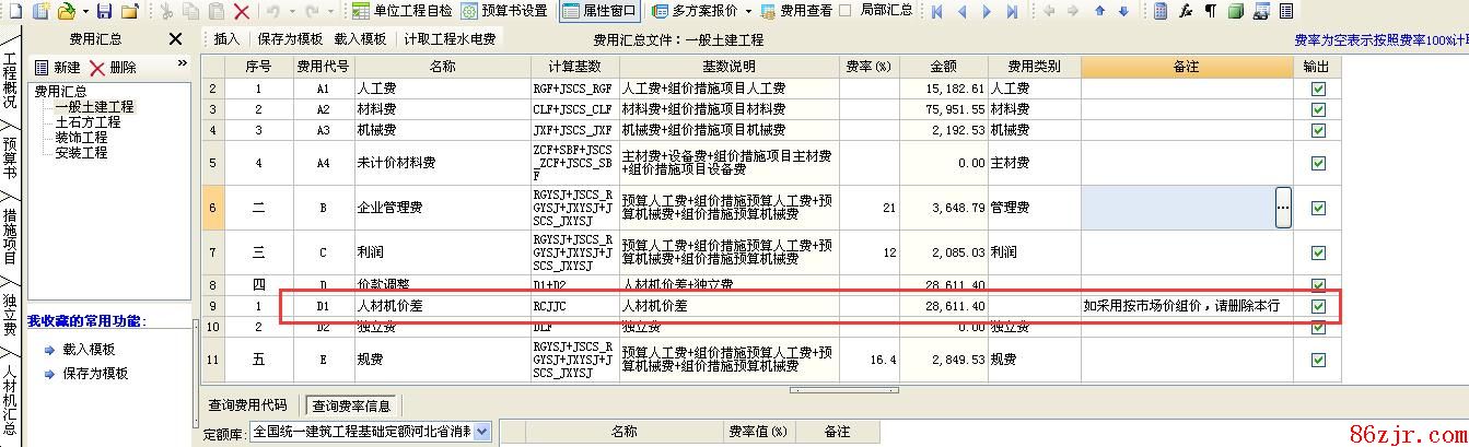 市场价和定额价的价差,不会少的。这也是总造价的一局部,在用度汇总的界面,可以看到该用度的。