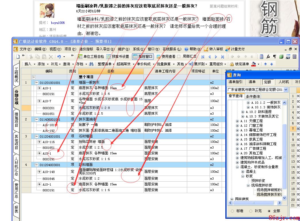 墙面刷涂料/乳胶漆之前的抹灰应该套取底层抹灰还是一般抹灰? 【这个是属于一般抹灰的,一般抹灰是包括面层的,是要达到能够直接粉刷的条件的】 墙面贴面砖/石材之前的抹灰应该套取底层抹灰还是一般抹灰? 请老师尽量给我一个合理的理由,谢谢您 【这个是基层抹灰的,基层抹灰只是打底找平为下一步的镶贴块料做准备的,当然套用的时候也要注意,墙面的块料镶贴包括这个基层的抹灰了(要确定一下你的当地定额是否包含,避免重复套用),定额单独列出这一项,是为了毛坯房交工只需要打底抹灰的时候,才使用这一条定额的】