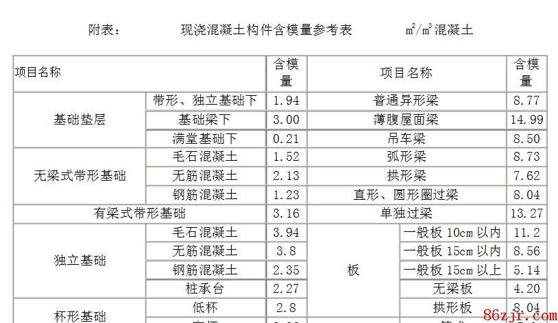 对了:含模量在混凝土章节的计算规则后有列表,但在定额解释中已经要求按照接触面积算。供参考。